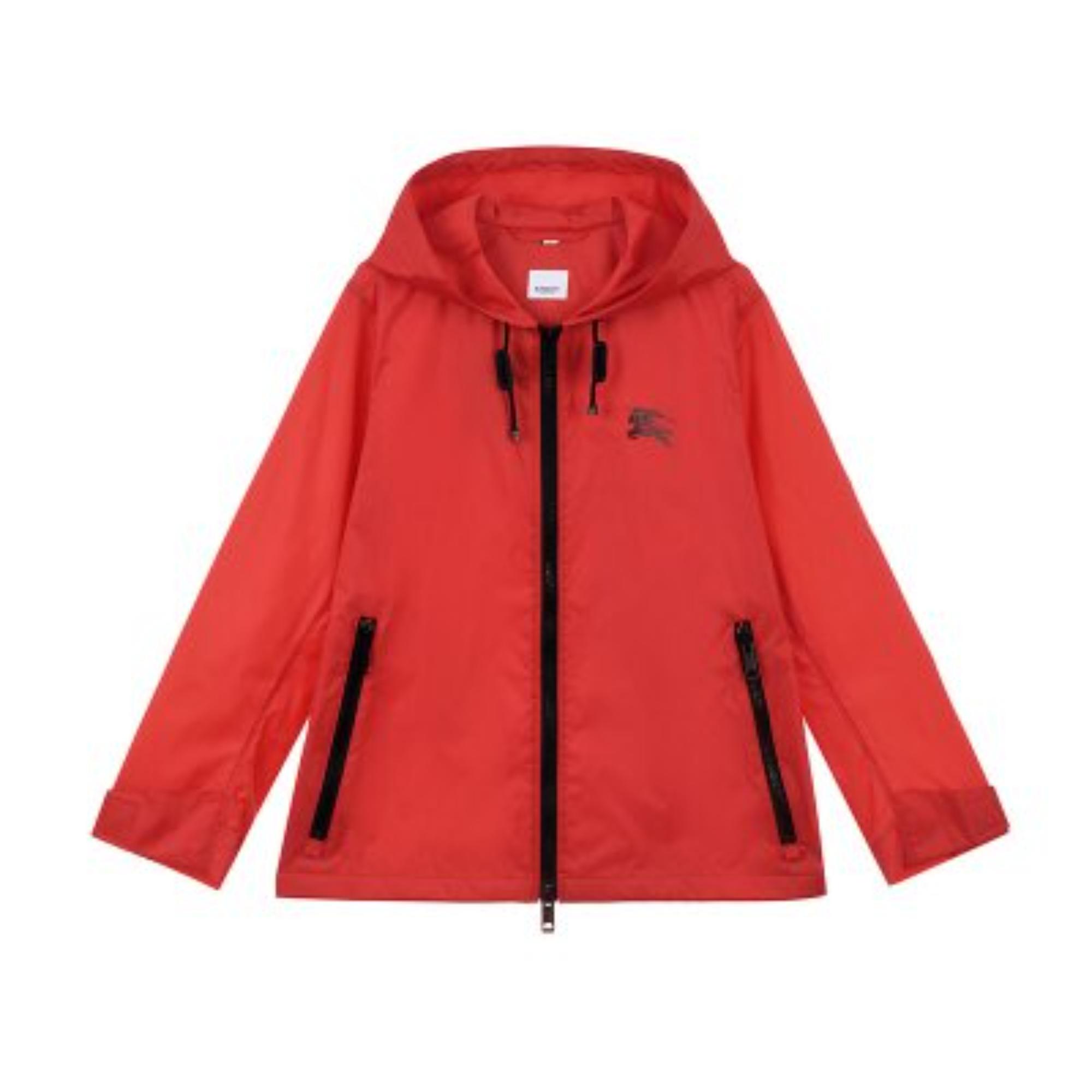 가슴의 기마상 프린트가 돋보이는 가벼운 나일론 소재의 후드 재킷.