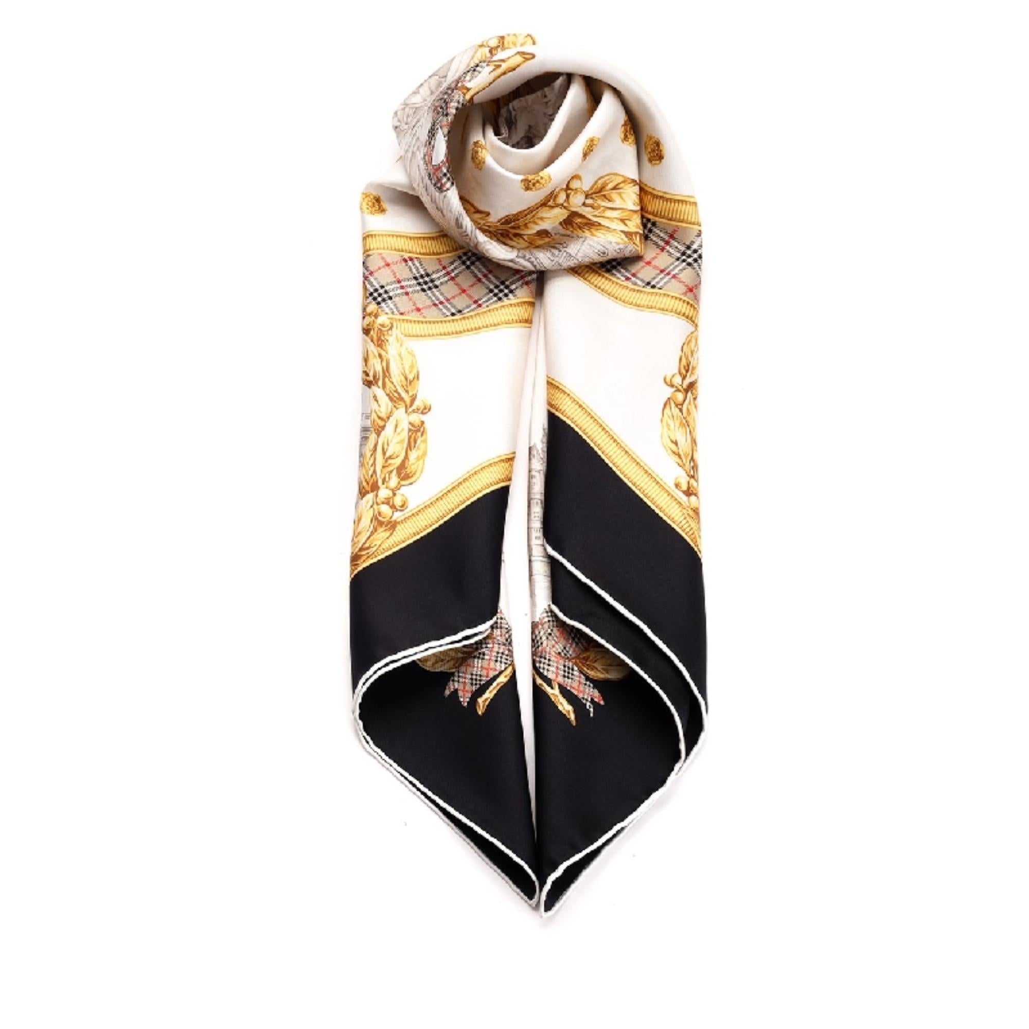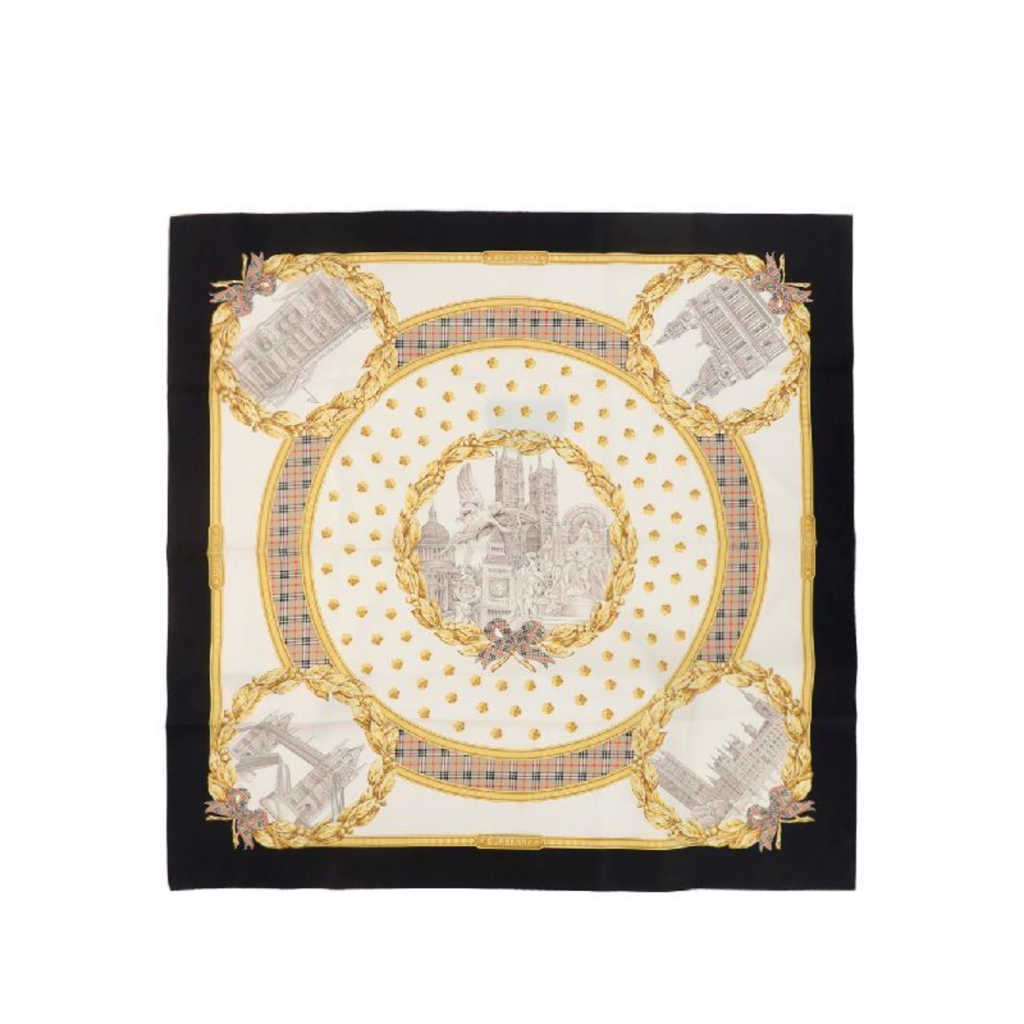 실크 트윌 소재로 이탈리아에서 제작된 스퀘어 스카프. 버버리 아카이브 프린트에서 영감을 받아 수작업으로 완성된 디자인이며, 잎사귀, 꽃과 어우러진 런던의 다양한 랜드마크 모티프가 특징.