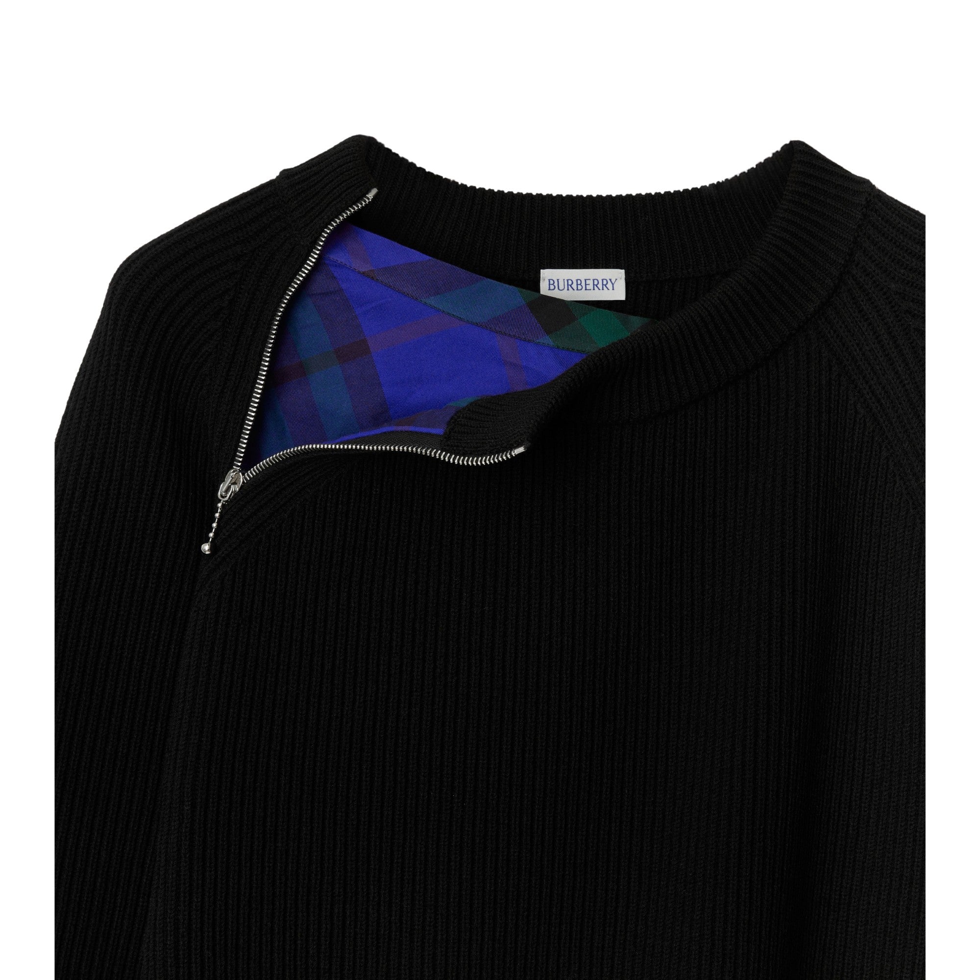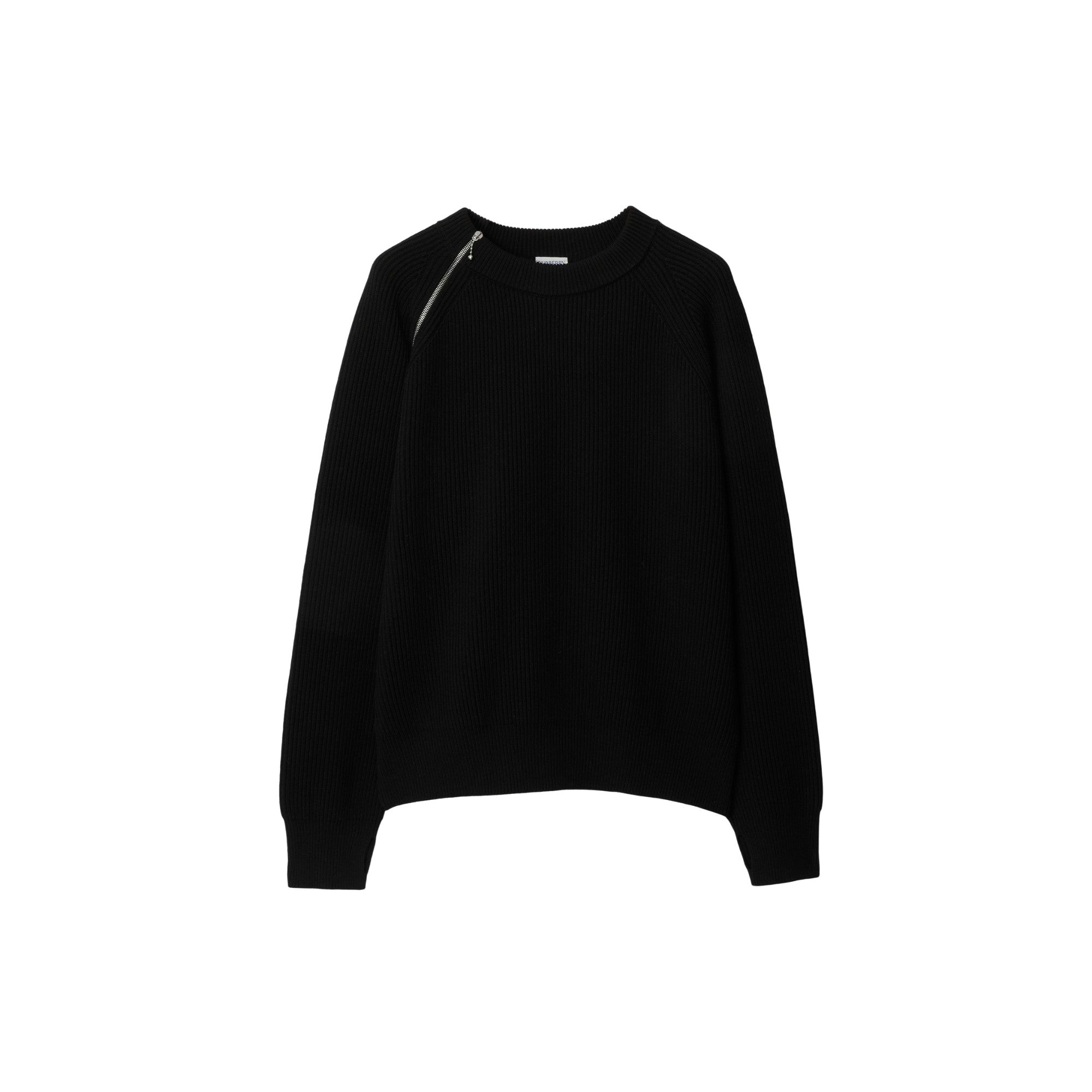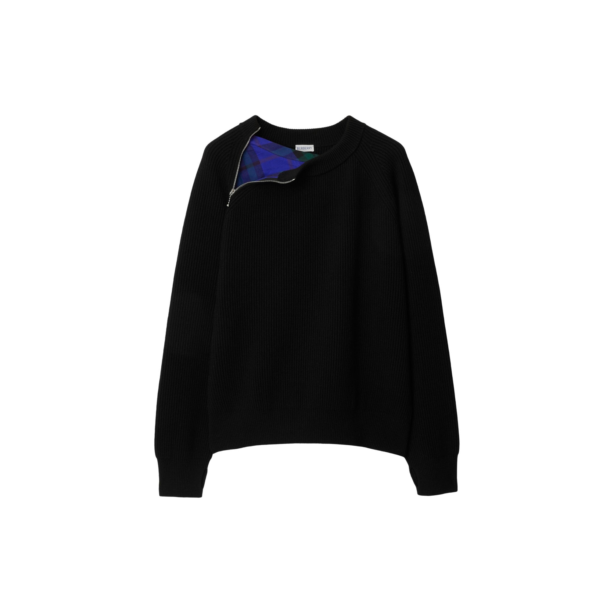 이탈리아에서 제작된 크루넥 울 스웨터. 리브 짜임 디자인과 릴랙스핏 실루엣이 특징. 어깨의 지퍼 디테일 내부에 연출된 버버리 체크 면 패널이 특별함을 더하는 아이템.##지퍼 여밈#버버리 체크 패널